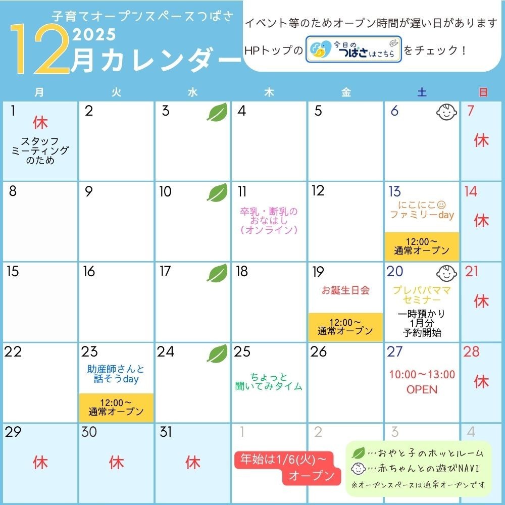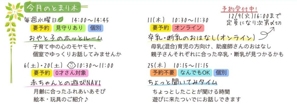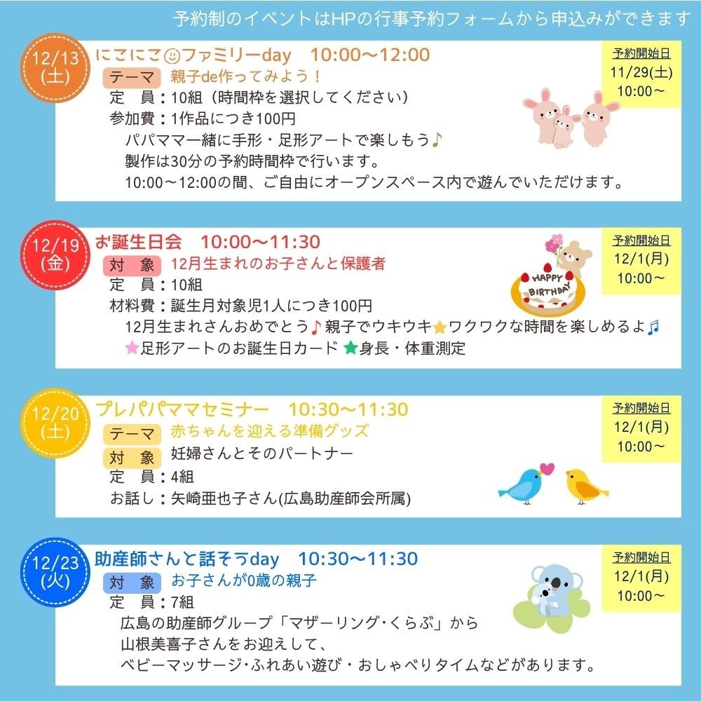 12/13(土)には にこにこファミリーday 親子de作ってみよう!を開催予定です。
